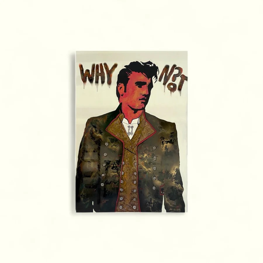 Et lekent kunstprosjekt der kjente ansikter får en uventet vri – ikledd norsk herrebunad. Serien utfordrer grenser mellom tradisjon og popkultur, og viser hvordan identitet og ironi kan møtes i ett uttrykk. Hvert portrett er laget med epoxy, tekstur og farge som gir nytt liv til symboler vi trodde vi kjente.