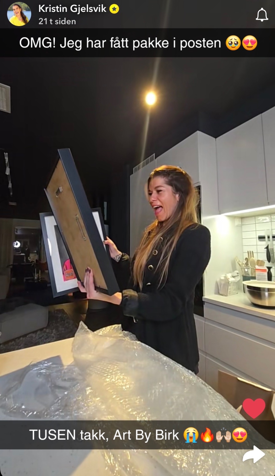 Da influenser Kristin Gjelsvik åpnet pakken med to håndlagde portretter fra Art By Birk, delte hun gleden med sine følgere i sosiale medier.